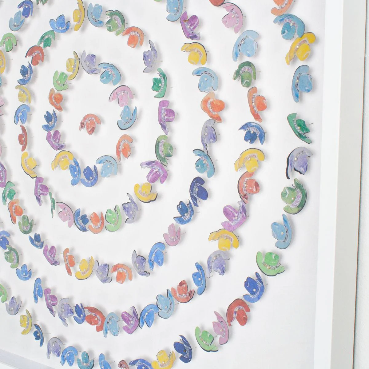 Can we get a yeehaw?! This new design of the Jen Lin Series speaks to our Texas soul. Printed cowboy hats are hand-cut and individually pinned to a white canvas.