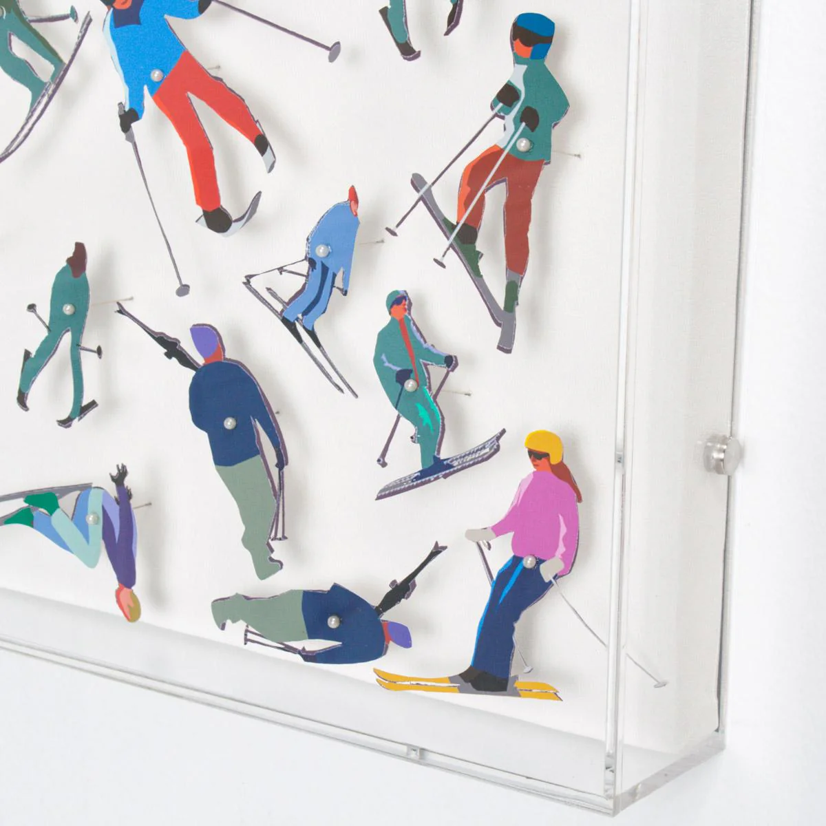 Après ski 3D figure art of the Jen Lin Series in an acrylic shadowbox frame.