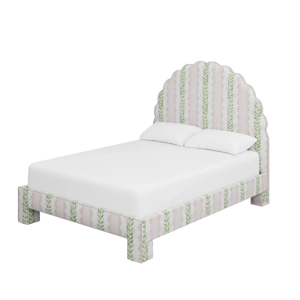 Enduringly graceful and thoughtfully scalloped, our customizable Juliet Bed is made to order in any fabric of your choice.