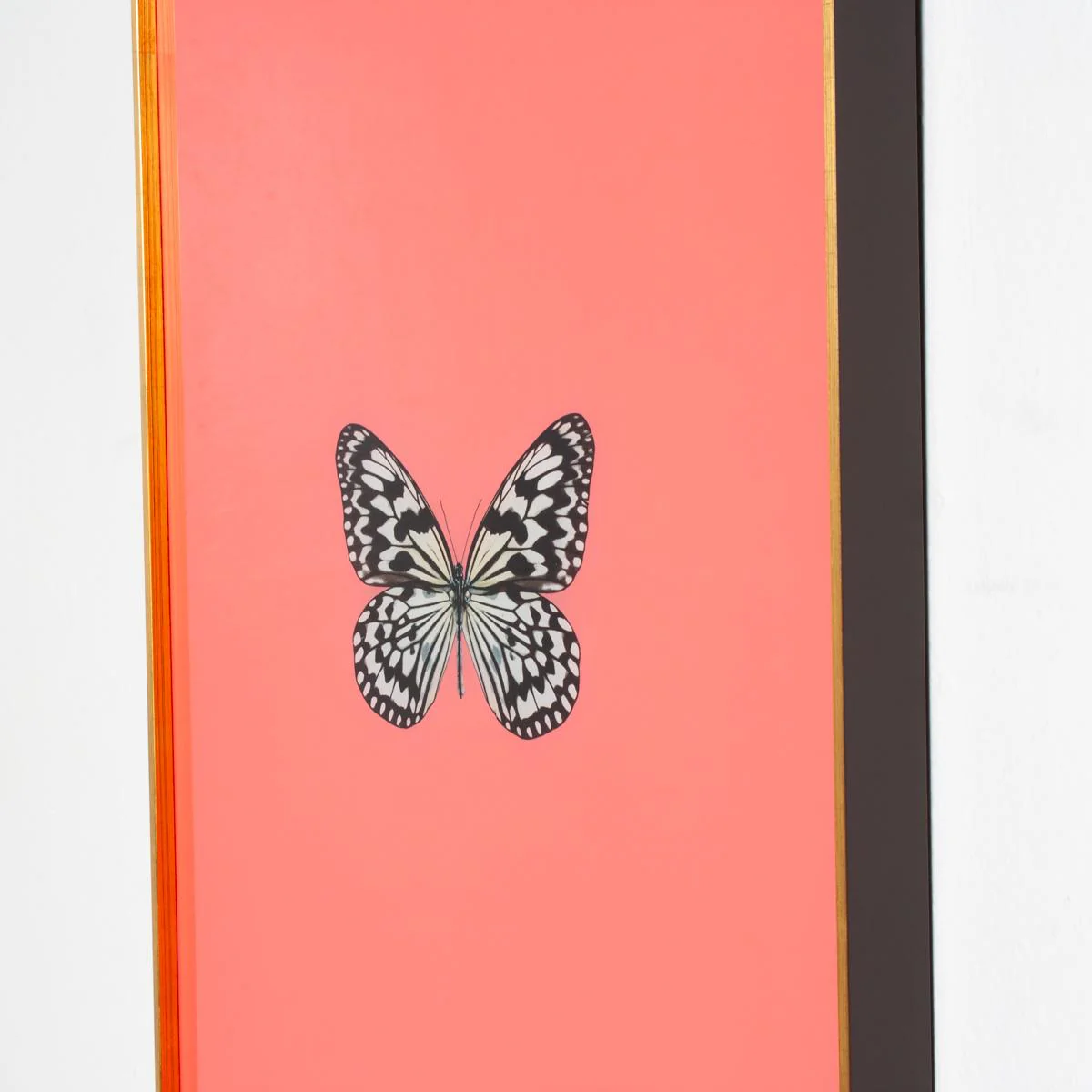 Scout exclusive pastel butterfly artwork. UV printed on acrylic film with a black and gold frame.