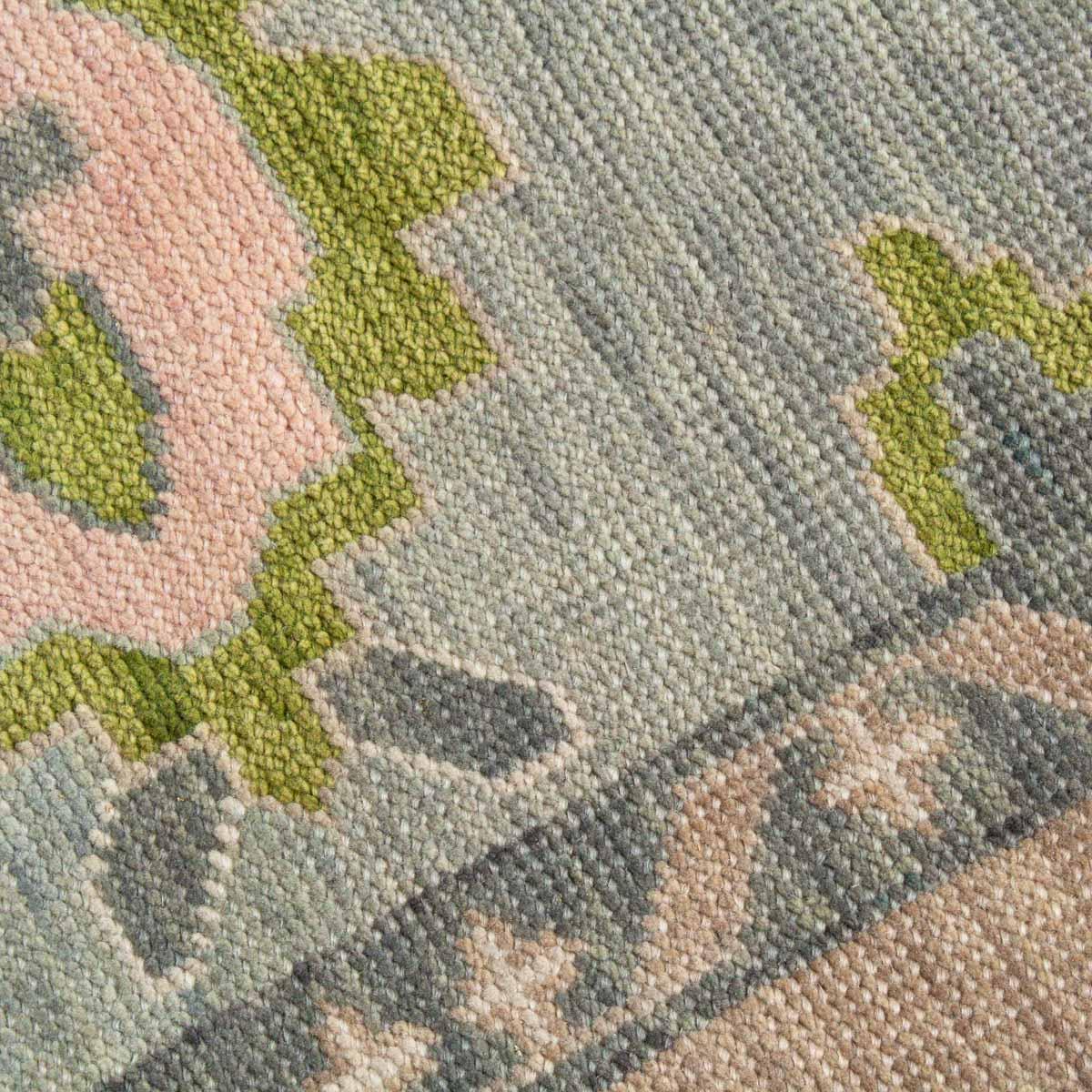 Inspired by spring, our Penelope rug is here to sing. Penelope features a floral oushak-inspired design with green and pink hues highlighted against a light blue-grey background. The nature colors and light-hearted feel of this rug make it a versatile option for any space.